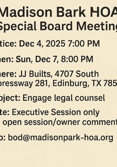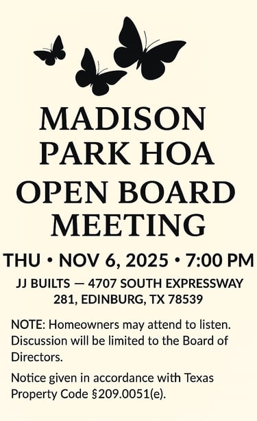 Welcome to the official website of Madison Park Subdivision HOA.